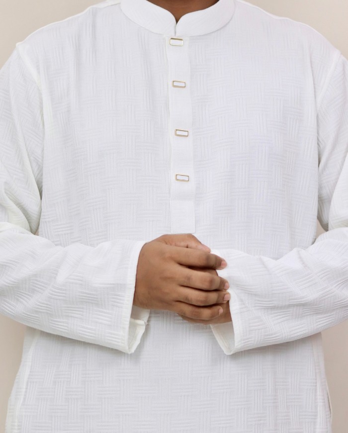 Crafted using cotton with a soft popcorn texture, this panjabi ensures breathability, comfort and a refined style for both special occasions and everyday wear.
