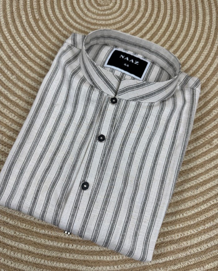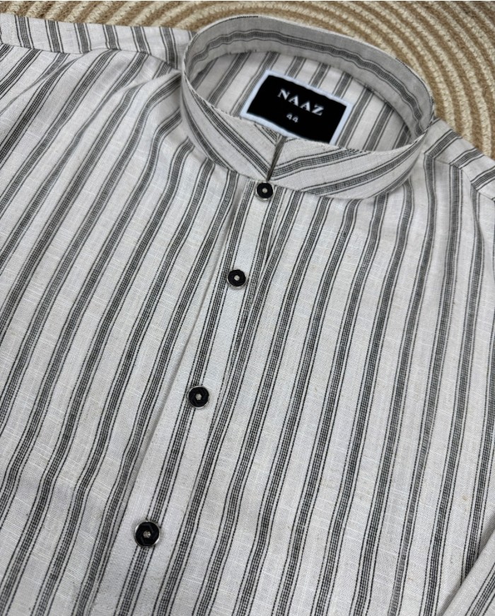 The Naaz Grey Stripe Panjabi blends simplicity with refined style, perfect for those who prefer a clean and sophisticated look. Designed with subtle vertical stripe patterns on a soft textured fabric, this piece offers both comfort and a premium feel.